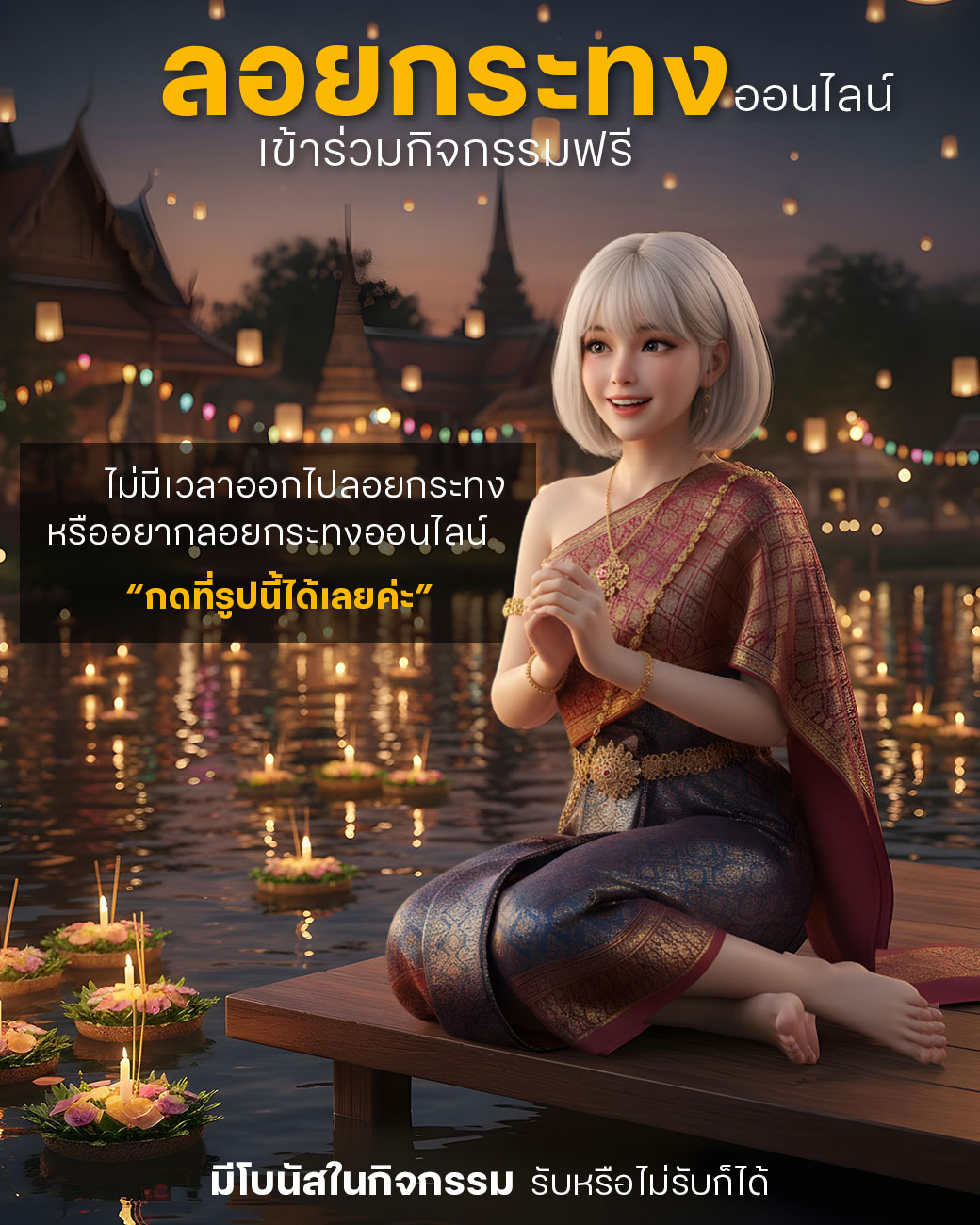 🎇ลูกค้าร่วมกิจกรรมลอยกระทง🎇 จะได้รับโบนัส 50 บาท 🎉หากต้องการรับเงื่อนไขฝากเครดิต 99 บาท ทำยอดเทริน์การเล่น 2 เท่า ถอนได้สูงสุด 5 เท่า เล่นได้เฉพาะสล๊อตค่าย PG เท่านั้น ห้ามทำการซื้อฟรีสปรินหรือพบว่ามีการทำยอดเทริน์ผิดปกติ หากตรวจสอบและพบเจอตัดสิทธิ์จากกิจกรรมทุกกรณี🎉